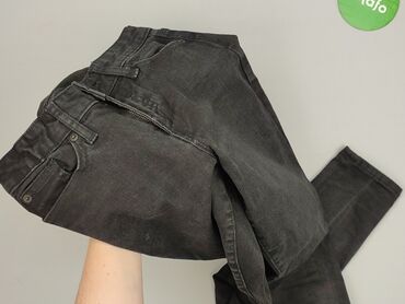 Czarne jeansy damskie z denimu, lekko sprane (wykończenie washed). - Fason: zwężane nogawki (tapered), wysoki stan. - Zapięcie: guzik metalowy i zamek. - 5 kieszeni: dwie z przodu + mała kieszon...