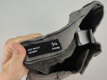 Jeansy damskie Sinsay - Model: DENIM - Rozmiar z metki: 34 - Kolor: ciemnoszary / grafitowy z delikatnym spraniem - Krój: dopasowany, zwężane nogawki (skinny) - Stan: średni stan (mid waist) - Zap...