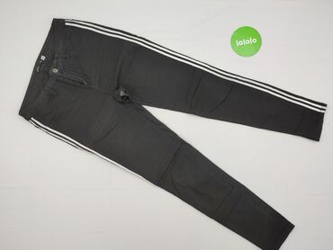 Czarne spodnie damskie Sinsay, rozmiar L. - Fason: slim/zwężane nogawki - Kolor: czarny - Ozdoby: srebrne nity w kształcie gwiazdek wzdłuż zewnętrznych szwów obu nogawek - Zapięcie: suwak i guzik ...