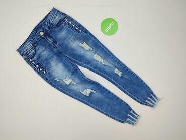 Damskie jeansy skinny z przetarciami - Krój: skinny (wąska nogawka) - Rozmiar z metki: EU 36 / US 6 - Kolor: granatowy denim z jaśniejszymi cieniowaniami - Wykończenie: modne dziury i przetarcia z...