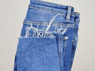 Przedmiotem ogłoszenia są damskie jeansy o kroju slim fit, charakteryzujące się klasycznym niebieskim odcieniem denimu. Spodnie posiadają przetarcia oraz postrzępione nogawki, co nadaje im swobodnego, nowoczesnego wyglądu. Wyposażone są w pięć kieszeni: dwie z przodu, dwie z tyłu oraz małą kieszonkę na monety. Zapinane są na guzik i zamek błyskawiczny. Szlufki umożliwiają noszenie paska. Idealne do codziennych stylizacji, zapewniając komfort i modny wygląd.
