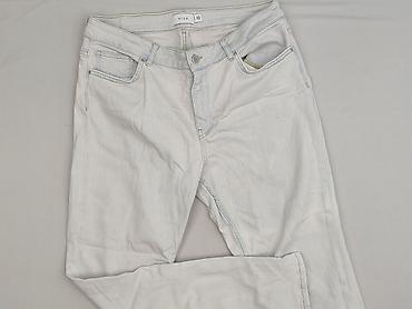 Damskie jeansy w kolorze jasnego, spranego błękitu. Klasyczny krój z pięcioma kieszeniami, szlufkami na pasek, zapięcie na zamek i guzik. Prosty, lekko zwężany nogawką fason. Rozmiar: XL (z metki)...