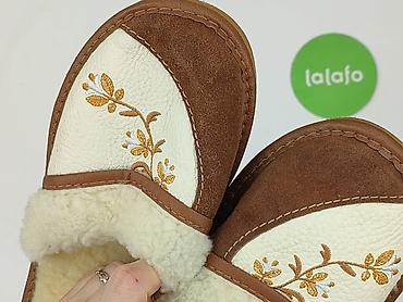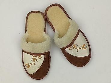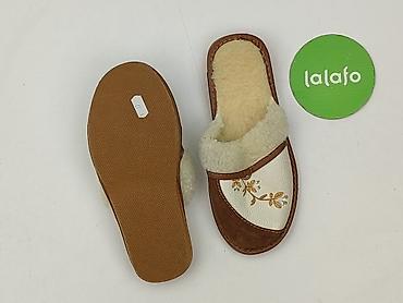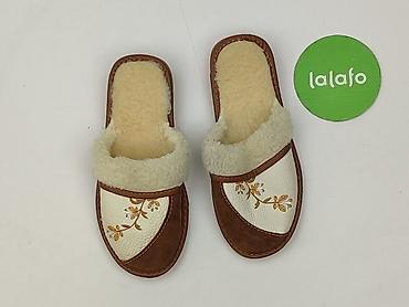 Damskie kapcie domowe – brązowe, wsuwane - Model: miękkie, pluszowe kapcie typu mule (otwarta pięta) - Kolor: ciepły brąz z jasnym, miękkim wnętrzem - Materiał: zewnętrzna tkanina pętelkowa/futerk...Stan: