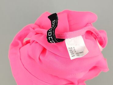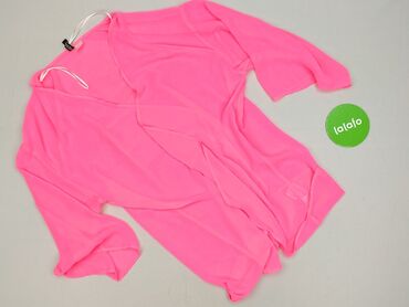 Różowa bluzka/ponczo damskie S/M - Fason: lekkie narzutko z głębokim dekoltem w kształcie litery V, wiązanie z przodu, luźne krótkie rękawy typu kimono. - Talia: elastyczne marszczenie po bokach i...