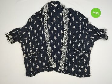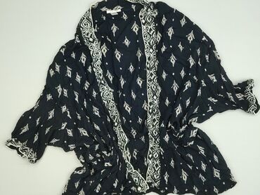 H&M Divided – narzutka/kimono damskie - Rozmiar: M (EU/US/CA/CN/MX – M) - Krój: luźny, otwarty przód bez zapięcia, krótkie/kimono rękawy - Wzór: geometryczny/etno, granatowo-biały z motywami rombó...