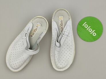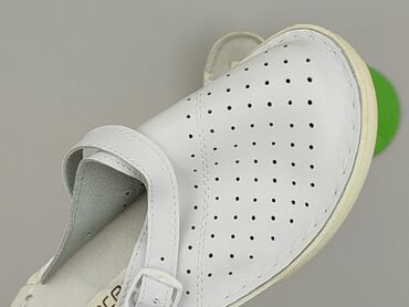 Białe klapki typu „crocs” z paskiem na piętę - Rozmiar: 36 (oznaczenie na podeszwie) - Kolor: biały - Materiał: lekka pianka tworzywowa - Przewiewna cholewka z licznymi otworami - Ruchomy pasek – ...