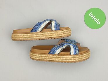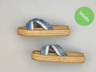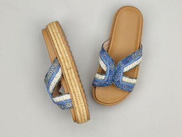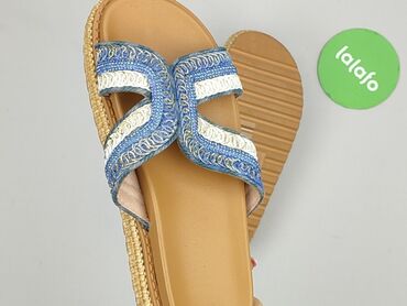 Klapki damskie QH - Rozmiar: 36 (oznaczenie na wkładce) - Kolor: beż/piaskowy - Model: wsuwane klapki z szerokim paskiem na podbiciu - Wierzch: szeroki pasek z delikatną, tekstylną fakturą - Wkład...