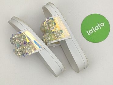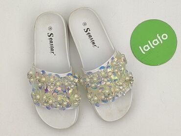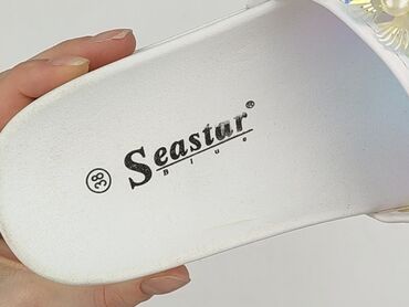 Klapki damskie Seastar Blue - Rozmiar: 40 (oznaczenie na wkładce i podeszwie) - Kolor: lawendowy/fiolet pastelowy - Model: wsuwane klapki z szerokim paskiem - Ozdoba: bogate aplikacje z wielokolor...