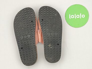Damskie japonki w kolorze złotym, rozmiar 37. Posiadają płaską podeszwę w odcieniu brązu z wytłoczonym wzorem na spodzie. Górne paski są złote, z klasycznym zapięciem między palcami oraz dodatkowym...