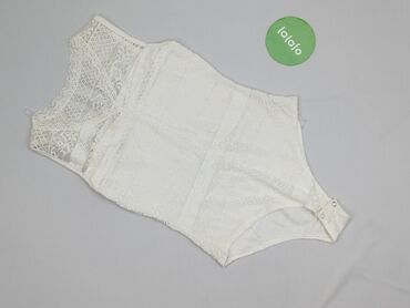 Body damskie ANSWEAR - Model: koszula-body z kopertowym dekoltem - Kolor: góra kremowa/ecru, dół czarny - Rozmiar z metki: S - Materiał: górna część o satynowym połysku; część majtkowa elastyczna ...