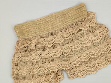 Ażurowe szorty damskie w kolorze ecru/kremowym. - Materiał: koronkowa, haftowana siateczka z florystycznym motywem; miękka podszewka w tym samym kolorze - Pas: elastyczna, szeroka guma dopasowując...