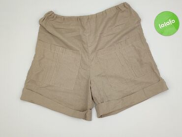 Damskie szorty lniane w kolorze jasnego beżu - Rozmiar z metki: L/XL - Skład: 95% len, 5% elastan – przewiewne, lekko elastyczne - Krój: wysoki stan, szerokie nogawki - Pas: szeroka, elastyczna ta...