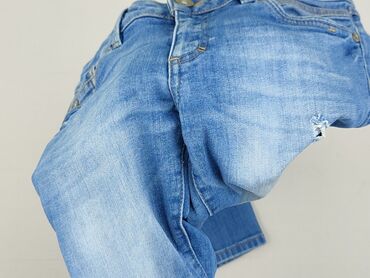 Jeansy damskie Esprit Slim - Fason: slim, dopasowane nogawki - Rozmiar z metki: W28 L28 - Kolor: średni niebieski denim z delikatnym spraniem - Stan wykończenia: surowo wystrzępione nogawki u dołu...