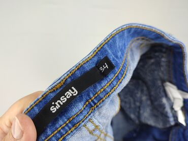 Jeansy damskie Sinsay - Model: rurki/skinny z wąską nogawką - Kolor: klasyczny jasny/średni niebieski z delikatnym przetarciem - Rozmiar z metki: 34 - Skład materiału: 80% bawełna, 18% poliester, ...