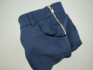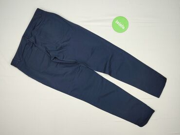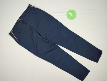 Ciemnoniebieskie spodnie damskie o prostym kroju nogawek, zapinane na zamek błyskawiczny i guzik. Wykonane z mieszanki bawełny, poliestru i elastanu, co zapewnia komfort noszenia i dopasowanie do s...