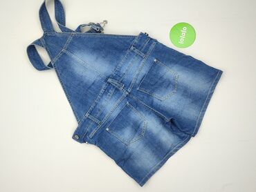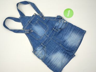 Jeansowe ogrodniczki–szorty damskie - Rozmiar: S (metka “SIZE S”) - Kolor: klasyczny jasny/delikatnie sprany niebieski denim - Krój: krótkie spodenki z ogrodniczkami - Regulowane szelki z metalowy...