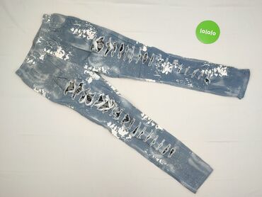 Jeansy damskie typu skinny/slim, niebieski denim z efektem sprania i przetarciami. - Fason: dopasowane nogawki, klasyczna wysokość stanu - Zapięcie: guzik metalowy + zamek - Kieszenie: 5 (dwie z t...