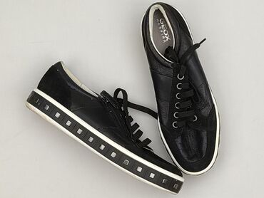 Damskie sneakersy na koturnie S. Barbera - Rozmiar: 39 (oznaczenie na podeszwie) - Kolor: jasny beż/ecru z subtelnymi złotymi akcentami - Cholewka: perforowana (liczne otwory zapewniające przewiew...Damskie półbuty/sneakersy Geox Respira