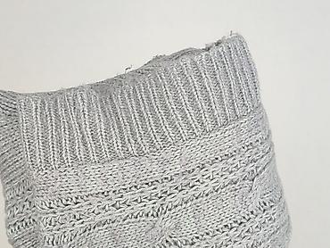 Sweter damski P-M, rozmiar z metki: XL/XXL. - Kolor: jasnoszary, z delikatnym, błyszczącym połyskiem - Fason: klasyczny, dopasowany, z okrągłym dekoltem - Dzianina: prążkowana pionowo; po bokach s...