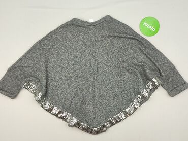 Szary, dzianinowy poncho/top bez rękawów - Krój: luźny, oversize, z wyraźnie poszerzanymi „skrzydłami” po bokach i dekoltem w kształcie litery V (z przodu i z tyłu). - Splot: gruby, wyrazisty ścią...