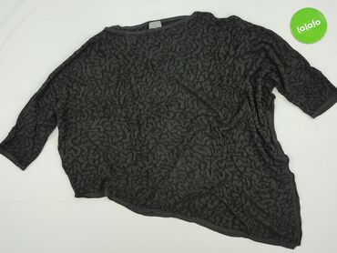 Ażurowy sweter damski ponczo - Kolor: czarny - Krój: luźny, asymetryczny dół z wydłużonym rogiem; opuszczona linia ramion - Rękawy: długie, zakończone ściągaczami - Dekolt: łódka - Splot: ażurowy/...