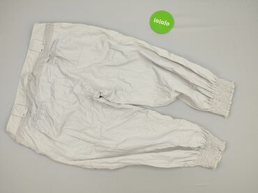 Beżowe spodnie damskie 3/4 z troczkami - Fason: luźne, długość 3/4 (rybaczki/capri) - Kolor: jasny beż - Materiał: gęsto tkana tkanina bawełniana z domieszką (mięsista, lekko sztywna) - Pas: elast...Stan: