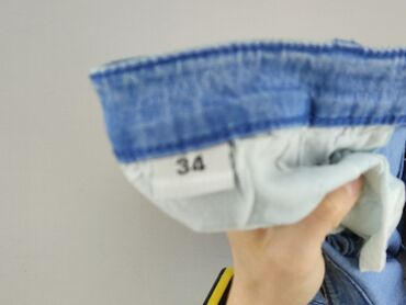 Damskie rybaczki jeansowe YOOR MIND - Fason: luźne, z zakładkami przy linii bioder, nogawki 3/4 zwężane ku dołowi - Zapięcie: podwójny guzik + suwak - Denimy: delikatnie sprane, jasny niebieski z ...
