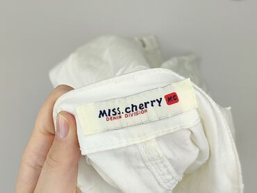 - Detale: metalowe aplikacje/napisy „Jeans” i „M Cherry Jeans” na tyle, przeszycia podkreślające linię kieszeni, szlufki na pasek
