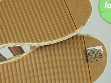 Sandały damskie H&M - Rozmiar: 36 (EUR 36, US 5.5, CN 225/1.5) - Model: płaskie sandały z zapięciem na sprzączkę przy kostce - Kolor: złoty/brązowy, metaliczny połysk - Cholewka: pleciona ozdobna ...