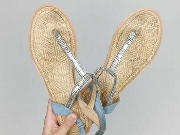 Sandały damskie z palcem – styl boho - Model: sandały japonki z wysoką cholewką - Kolor: jasny niebieski (błękit) - Materiał cholewki: zamsz/eko-zamsz - Podeszwa: płaska, w kolorze karmelowym - Za...