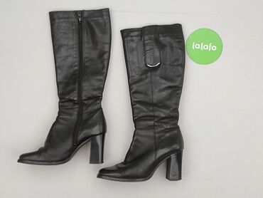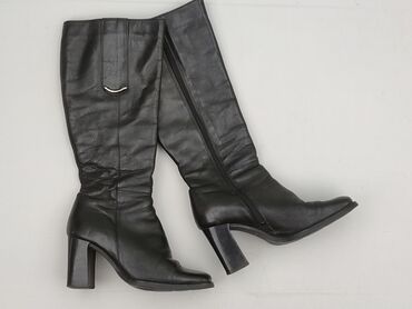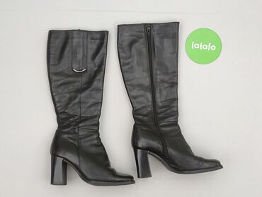 Kozaki damskie za kolano, na wysokim słupku, w kolorze jasnoszarym. - Wysoka cholewka over-the-knee z wiązaniem z tyłu (możliwość dopasowania obwodu). - Z boku praktyczny zamek ułatwiający zakłada...