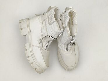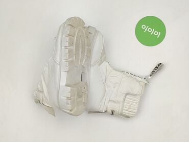 Białe damskie śniegowce/kozaki zimowe na masywnej, bieżnikowanej podeszwie.