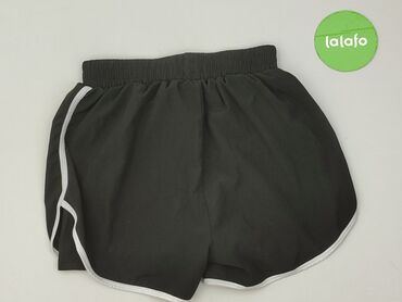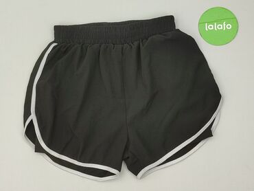 Damskie szorty sportowe – czarne - Rozmiar: M (z metki) - Materiał: 80% poliamid, 20% elastan – lekki, elastyczny, szybkoschnący - Krój: luźny, z zaokrąglonymi bokami i lekkim marszczeniem - Pas: ...