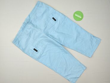 Błękitne spodnie o długości 3/4 z gumką w pasie i sznurkiem do regulacji. Spodnie posiadają praktyczne kieszenie cargo na udach, zapinane na rzepy, z ozdobnymi czarnymi aplikacjami. Idealne do codziennego użytku, zapewniające swobodę ruchów. Stanowią wygodną i funkcjonalną część garderoby.