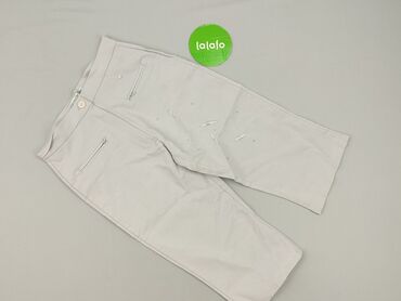Damskie spodnie 3/4 w kolorze jasnoszarym - Model z elastycznym pasem – wygodne dopasowanie bez zapięcia - Długość do łydki (capri/rybaczki) - 4 kieszenie z przodu; dwie zapinane na suwak z dekora...Stan: