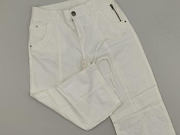 Białe damskie spodnie 3/4 (rybaczki) Made in Italy, rozmiar S. - Krój: długość 3/4, lekko zwężane nogawki - Zapięcie: cztery ozdobne guziki z przodu - Kieszenie: 5 kieszeni (3 z przodu, w tym mała...