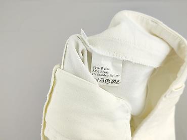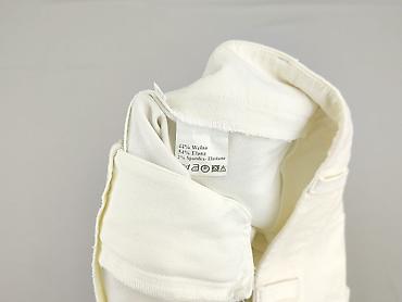 - Detale: gładkie bez wzorów, zaszewki modelujące w pasie, wykończenie nogawek na prosto