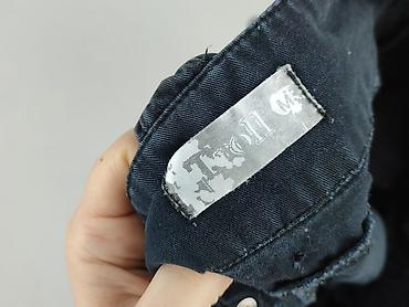 - Detale: szerokie szlufki w pasie, przeszycia modelujące, ozdobne guziki i patki przy nogawkach