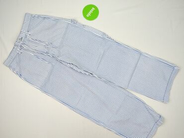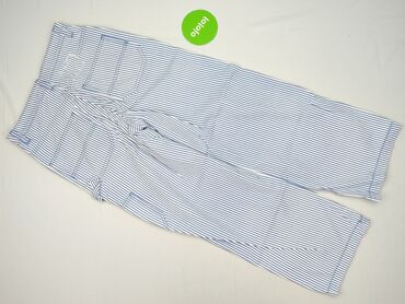 Spodnie damskie House Collection, rozm. S - Fason: luźne, zwężane nogawki; papierowa talia (paperbag) z falbanką - Wzór: granat w drobne pionowe prążki - Pas: elastyczna guma + materiałowy pasek d...