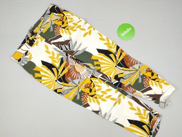 Damskie spodnie w kwiatowy wzór - Rozmiar z metki: L (EU 44, F 12) - Kolor bazowy: ecru/śnieżna biel z roślinnym printem w odcieniach zieleni, szarości i brązu - Krój: luźne, zwężane ku dołowi - P...