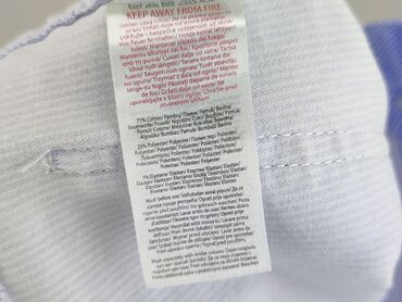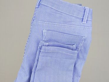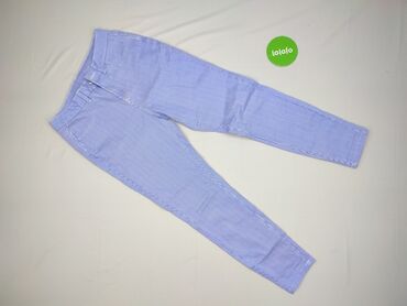 Damskie spodnie w paski Beloved - Model: slim/zwężane nogawki - Wzór: drobne pionowe paski biało‑niebieskie - Zapięcie: suwak + guzik, szlufki na pasek - Kieszenie: 5‑kieszeniowe (2 z przodu, kies...
