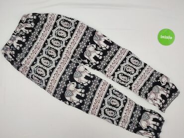 Spodnie damskie typu harem/boho z motywem słoni - Krój: luźne, haremki z obniżonym krokiem - Pas: szeroki, elastyczny ściągacz dopasowujący się do sylwetki - Nogawki: zakończone elastycznymi manki...Stan: