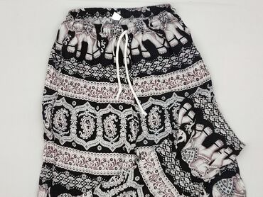 Damskie spodnie typu harem/boho z elastycznym pasem - Fason: luźne spodnie z obniżonym krokiem, zwężane ku dołowi nogawki - Wzór: czarno-biały, geometryczny/etniczny nadruk na całej powierzchni - ...
