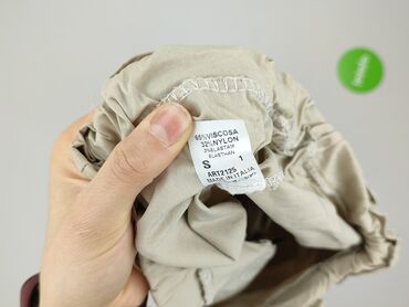 Beżowe spodnie damskie cargo Resus - Rozmiar: XXS (z metki 31/5) - Fason: joggery/cargo, nogawki zakończone ściągaczami - Stan talii: wysoka talia z szeroką gumą i wiązanym paskiem - Kieszenie: po...