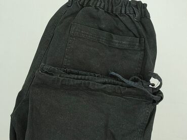 Czarne spodnie cargo SHEIN - Rozmiar: S (EU 36 / US 4) – metka na zdjęciu - Krój: luźne, ze ściągaczami w pasie i u dołu nogawek - Kieszenie: boczne typu cargo na obu nogawkach - Materiał: 100% po...