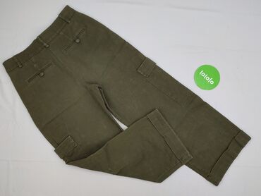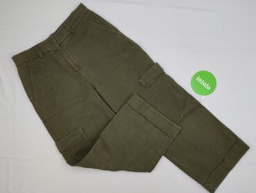 Zielone spodnie cargo H&M - Model: spodnie typu cargo z szeroką nogawką - Kolor: butelkowa zieleń z kontrastowym, białym stebnowaniem - Materiał: 100% bawełna (metka na zdjęciu) - Rozmiar z metki:...