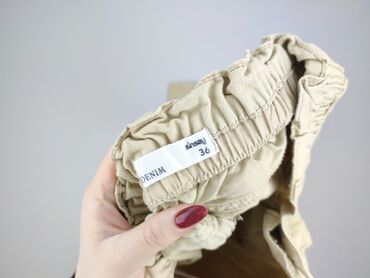 Damskie spodnie cargo w kolorze beżowym - Krój: luźny, proste nogawki - Talia: elastyczna guma + troczki do regulacji - Materiał: 100% bawełna (metka na zdjęciu) - Kieszenie: boczne wpuszczane, ca...