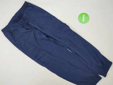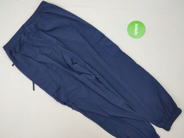 Granatowe spodnie cargo S/M - Krój: proste nogawki, luźny fason - Pas: elastyczna gumka zapewniająca wygodne dopasowanie - Kieszenie: dwie wpuszczane po bokach + kieszenie cargo na nogawkach z kla...