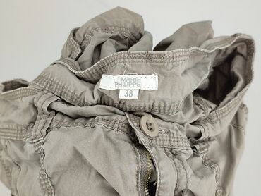 Spodnie damskie typu cargo marki Marie Philippe w rozmiarze 38. Wykonane w 100% z bawełny, co zapewnia komfort noszenia. Model Freya Cargo Pant charakteryzuje się licznymi kieszeniami, w tym bocznymi kieszeniami cargo zapinanymi na guziki, co zwiększa ich funkcjonalność. Guziki w pasie dodają im praktycznego i stylowego wyglądu. Spodnie mają długość 3/4, idealne na co dzień. Ich beżowy odcień sprawia, że łatwo dopasują się do wielu stylizacji.