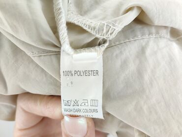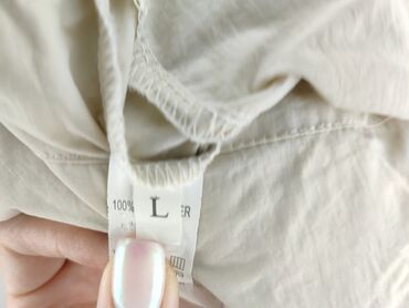 Beżowe spodnie damskie Mila, rozmiar L - Krój: luźny, z zakładkami z przodu; nogawki lekko zwężane - Stan w talii: wysoki - Talia: elastyczna z tyłu; z przodu listwa z ozdobnym zatrzaskiem/kokardą...